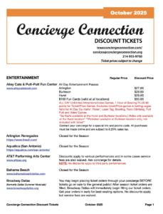 Click here for pdf of: the October 2025 Concierge Connection Discount List
